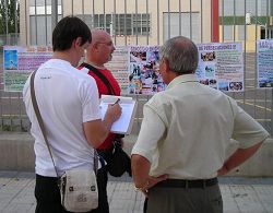 【明慧网二零零八年九月十三日】为期三个月的西班牙萨拉格萨(ZARAGOZA)世博会悄然落下帷幕。世博会景点无疑成了假期游人最好的去处。法轮功学员不止一次利用周末来到世博会标志建筑之一的志愿者步行桥(PASARELA DELVOLUNTARIADO)桥畔的小公园向游人讲真相,揭露发生在中国的中共对法轮功灭绝人性的迫害。