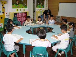 这里是经过政府核准立案,位在台北县永和市著名学区的一家托儿所──明慧学校豆豆园;早上七点半至九点时间,陆续有家长将小孩送来,年龄从二岁多到六岁左右,他们分别来自永和当地、台北市吴兴街、内湖区、士林北投区,也有特地迁居到园区邻近的,以求方便。