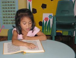 黄绍宇三岁时进到豆豆幼儿园,目前就读小学二年级的他,放学就到安亲班来做功课并且学法炼功,感觉每天都非常充实和高兴,妹妹明雅也在这里上幼儿班。每天接送他俩的妈妈宋美玲说:“现下坊间幼儿园只重知识教学,忽视孩子品德教育的重要性,这里的老师以真、善、忍为出发点来教导小孩,非常好。”