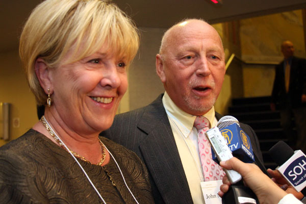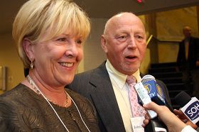 ![]() 卡里登(CALEDON)市长莫里森(左)和丈夫 |