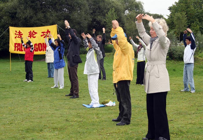 ![]() 法轮功学员在炼第二套功法 |