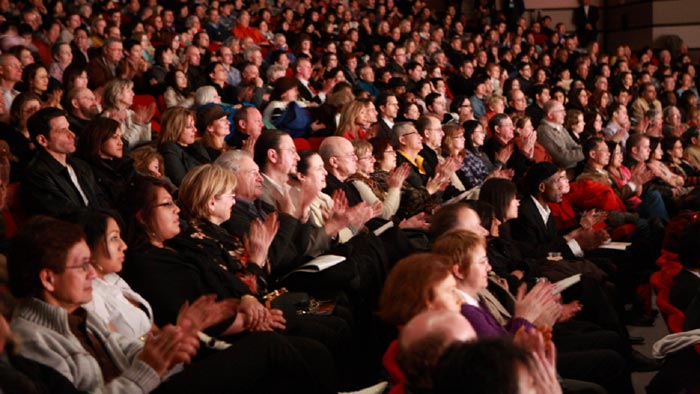 ![]() 二零零九年一月十日,神韵纽约艺术团在多伦多第四场演出 观众屏气凝神看神韵 |