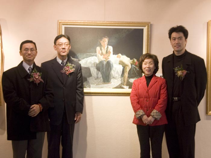 ![]() 基隆文化局长杨桂杰(左一)与市议员郑林清凉(右二)揭画《蒙难在中原》,庄重的十字构图,象征着永恒。 |