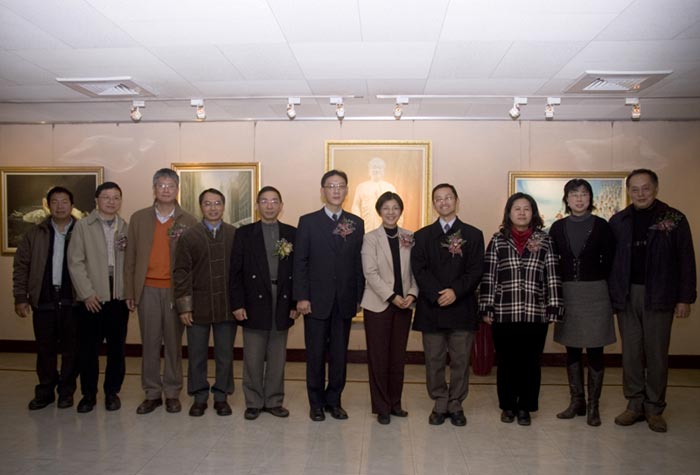 ![]() 基隆市文化局局长杨桂杰(右四)、新三才文化协会理事长张锦华(右五)与中和国小校长连海生(右一)、国际狮子会300F16分区主席黄茂松(左五)、立委代表及多位嘉宾,于真善忍国际美展画作前留影。 |
