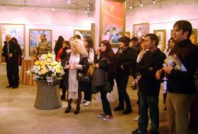 在十二天的时间里,前来参观画展的人几乎涵盖了当地的各个阶层。人们不仅被作品所展现的强大艺术魅力所折服,与此同时,几乎所有人都对法轮功学员在中国所遭受的迫害感到震惊和同情。展厅里经常出现观众热泪盈眶的感人场面。