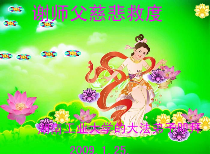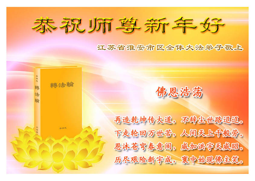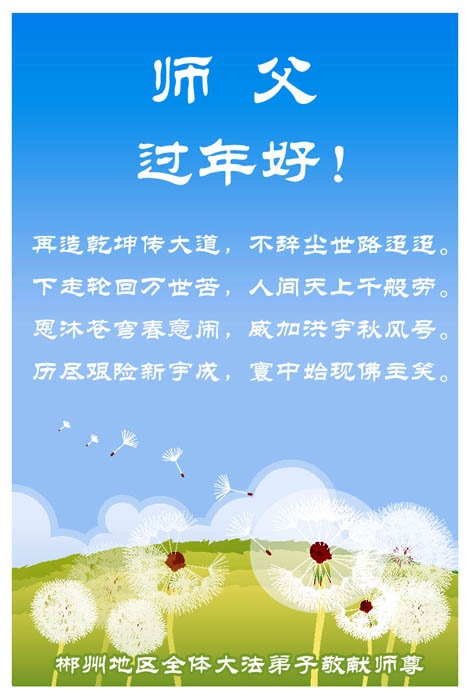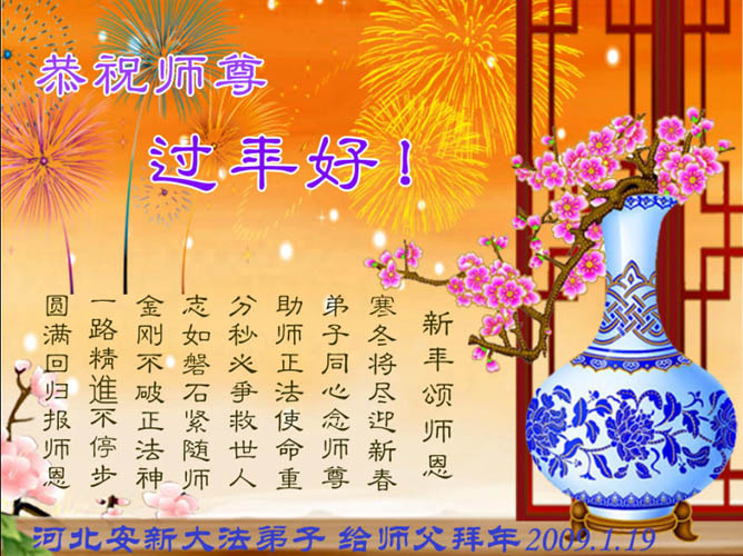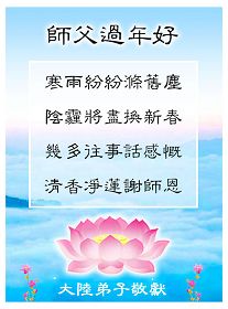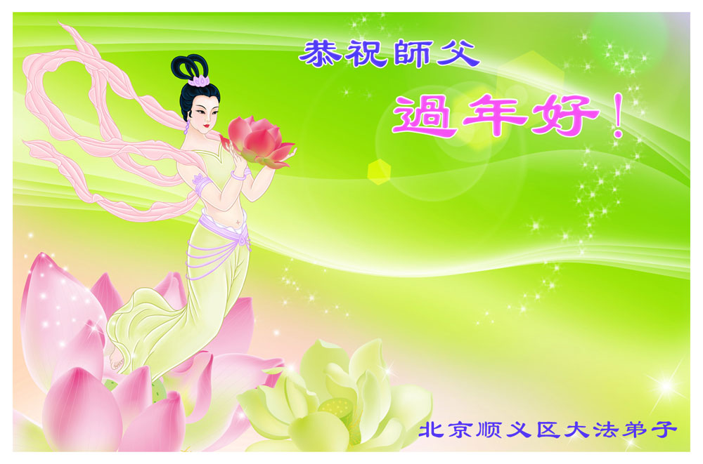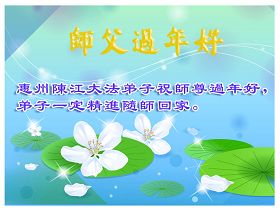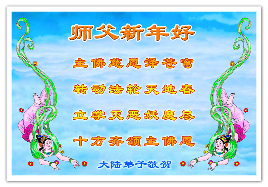 中国农历新年即将到来,大法弟子给慈悲伟大的师尊拜年,并祝师尊新年快乐。同时感谢师尊的慈悲苦度,向师尊合十叩拜。我们正在按照师尊的教诲,精進实修,认真做好三件事。