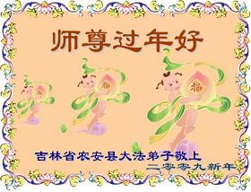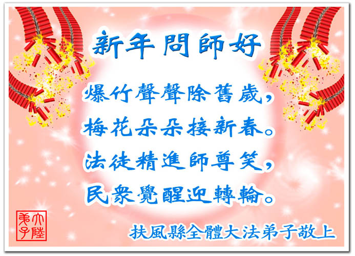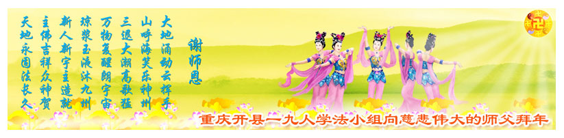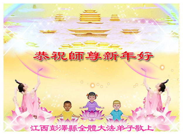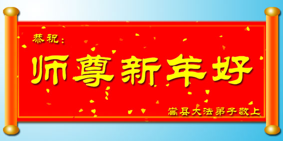 随着岁月的流失,又一个新年即将到来。在这辞旧迎新的日子里,我们全乡镇的大法弟子向伟大的恩师拜年!祝师尊新年快乐!弟子们思念我们伟大的师尊。在这瞬间即逝的宝贵时间里,我们要紧跟师父的正法進程,去掉各种执著,精進实修,学好法,做好三件事,比学比修,整体升华,整体提高。圆容师尊所要的,不辜负恩师的期盼。完成我们肩负的重任——救度众生,圆满随师把家还。谢谢恩师。