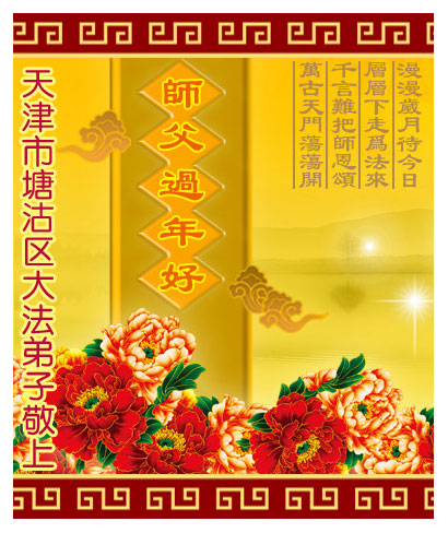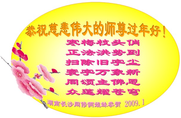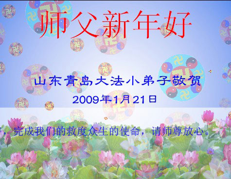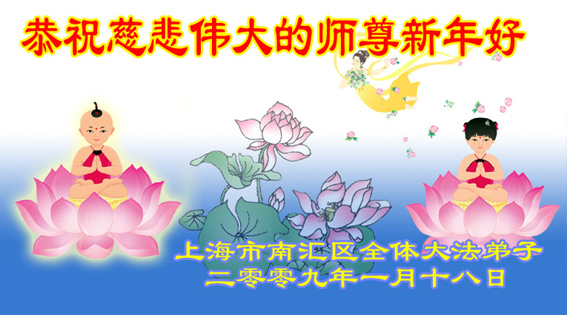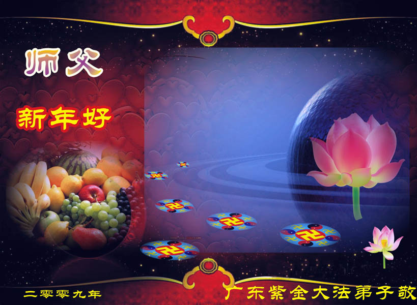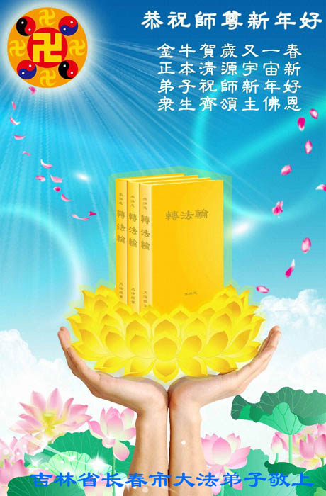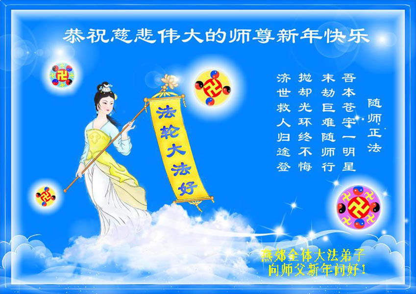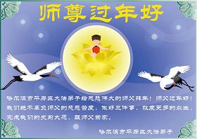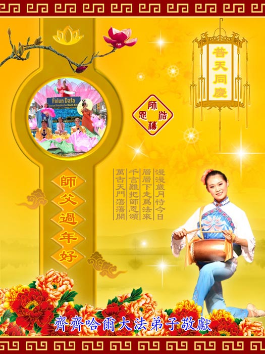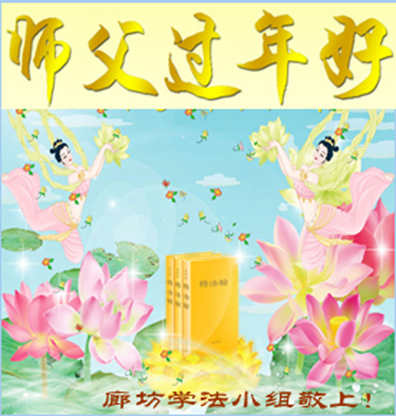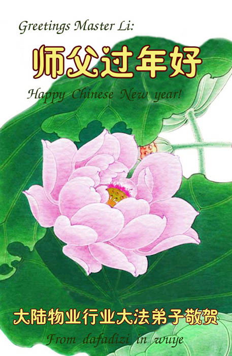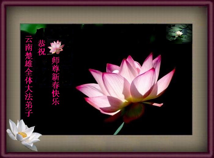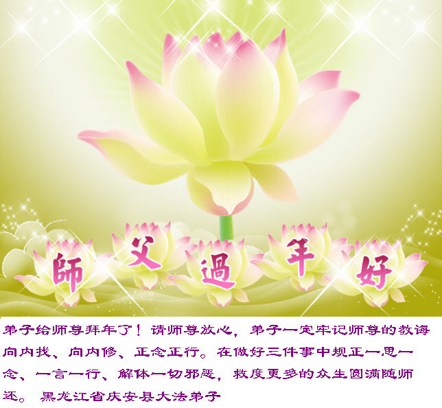 在中国新年到来之时,我们怀着无比崇敬至尊至高的心情衷心祝福师父中国新年快乐!弟子们想念师父,多想与师父同在,返本归真,回到我们真正的家园。为此只有加倍努力做好三件事,无条件的向内找,修去为私为我的旧宇宙观念,去掉最后根本的执着。讲清真相、救度众生,正念正行,完成正法时期大法弟子的伟大使命!