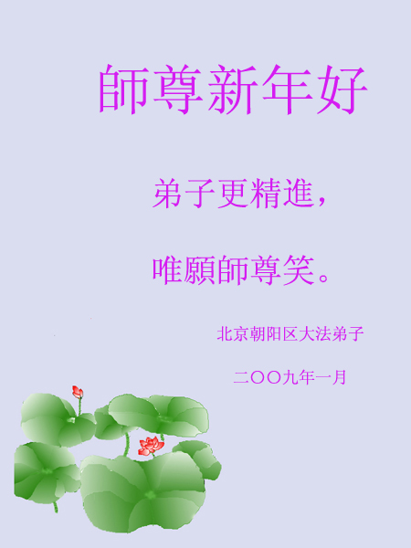 在中国的传统佳节新年到来之际,北京市大法弟子恭贺慈悲伟大的师父新年好!新年快乐!师父辛苦了!