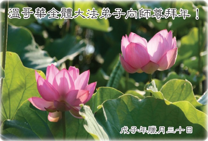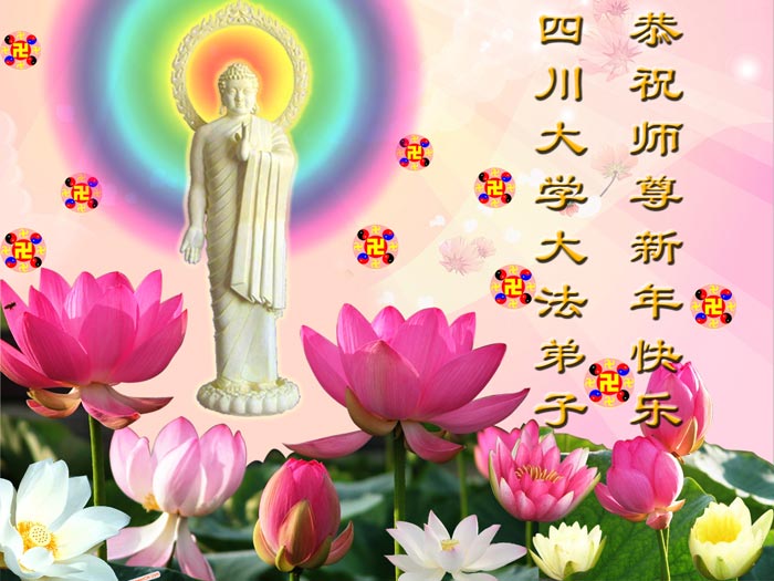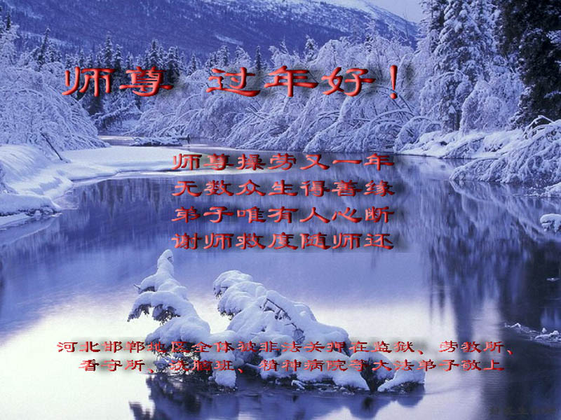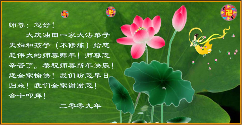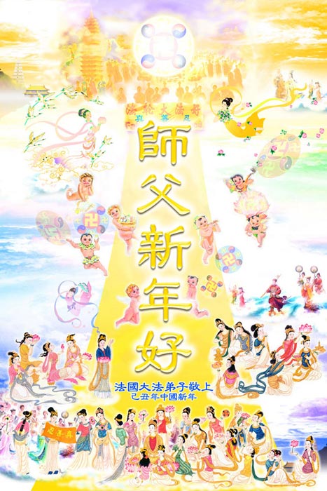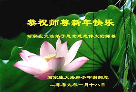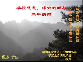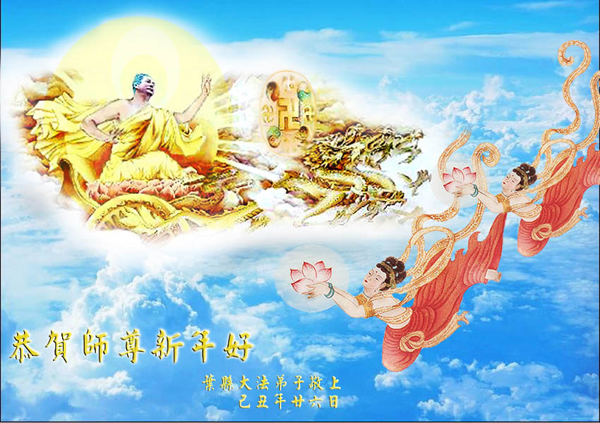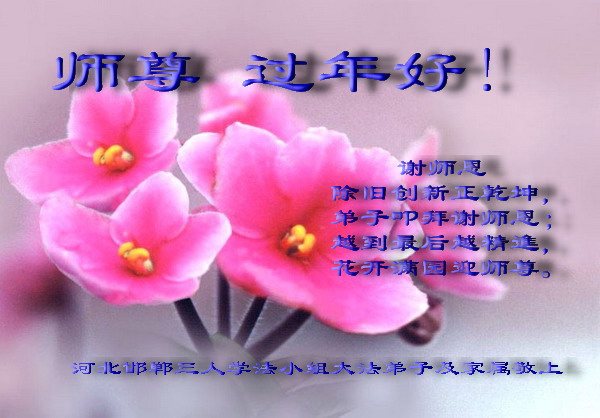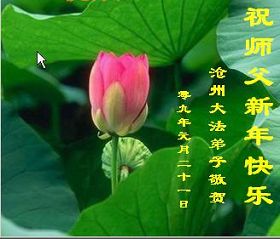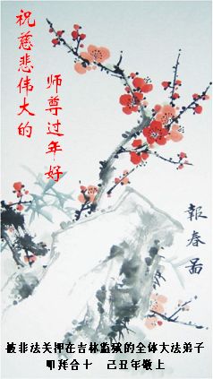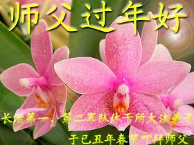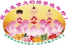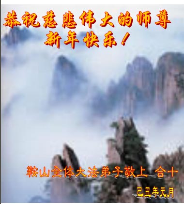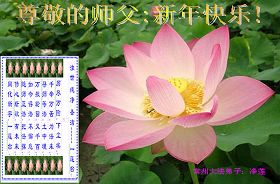 值此新春佳节即将来临之际,弟子恭祝师父新年快乐!我们一定牢记您的重托,多学法,多除恶,广救众生,早一点迎接法正人间的到来!