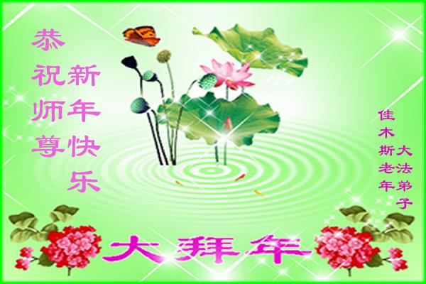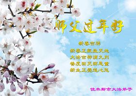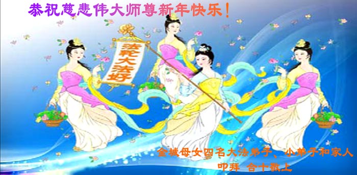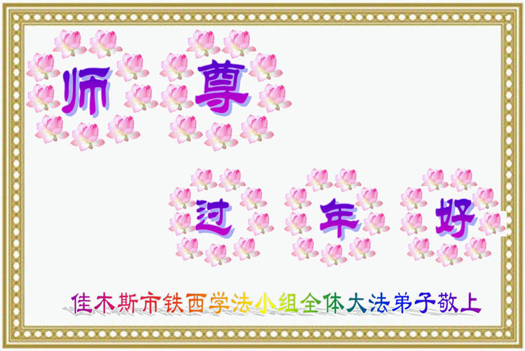新年到了,我们给您拜年!恭祝师尊新年快乐!我们深深感恩师尊的慈悲苦度和佛恩浩荡!在风风雨雨中,在魔难中我们走到了今天,每一步都离不开师尊的慈悲呵护。我们会珍惜所走过的路,更加努力走好最后的路。作为“正法时期的大法弟子”,我们还远未真正达到标准和要求,与精進的同修比,差距很大。在新的一年里,我们要在做好“三件事”中,修好自己,多救度一些众生和世人,不负使命、不负师尊的慈悲苦度。