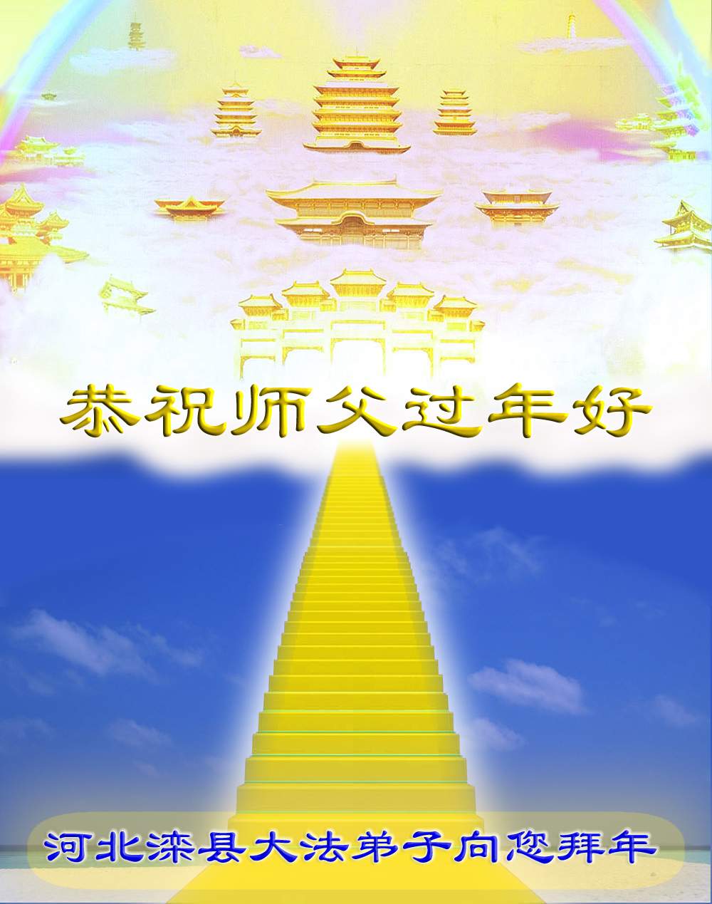 师尊:您好!您辛苦了!祝您新年快乐!弟子紧跟师尊正法,直至随师还。