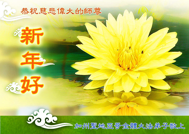 恭祝慈悲伟大的师尊新年快乐,万事如意!弟子在新的一年里要静心学法,认真做好三件事,加快、加大救度众生的步伐,圆满完成我们的历史使命。