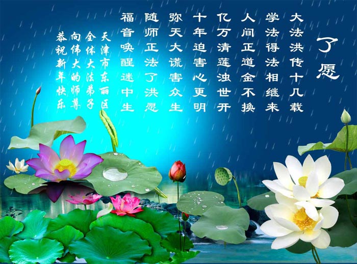 请师尊放心,在新的一年里,我们一定抓紧做好三件事,认真讲真相救度众生,紧随师尊正法至功成圆满。