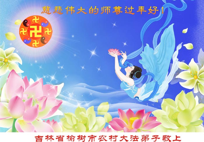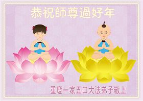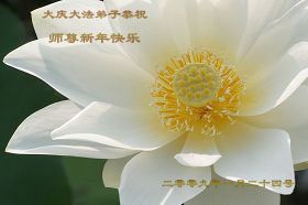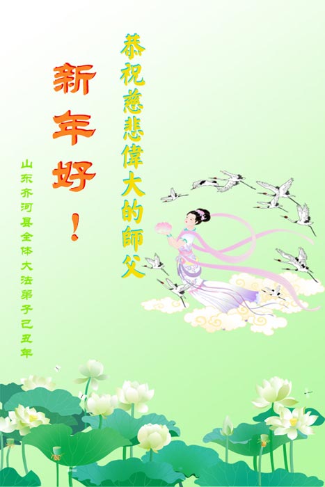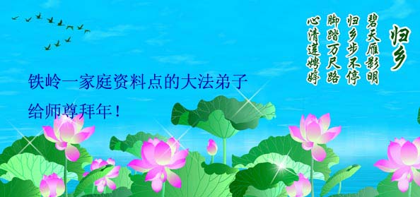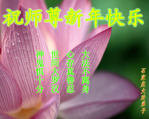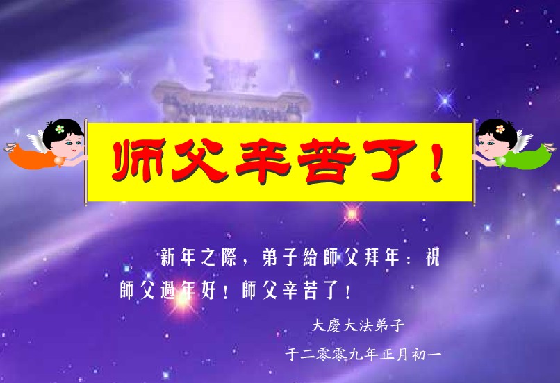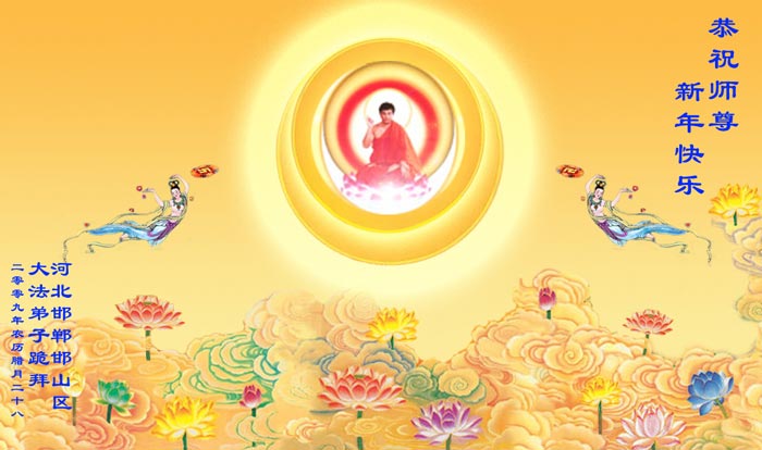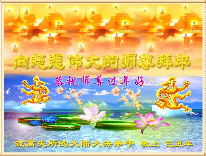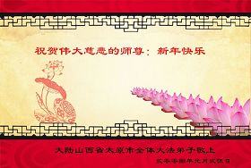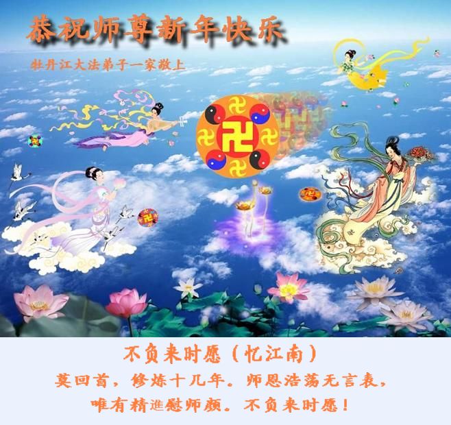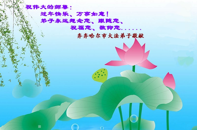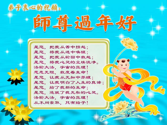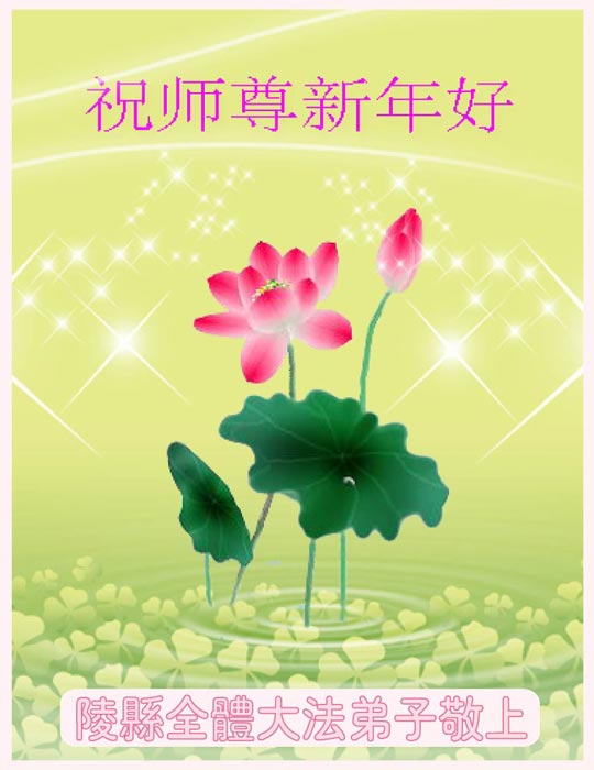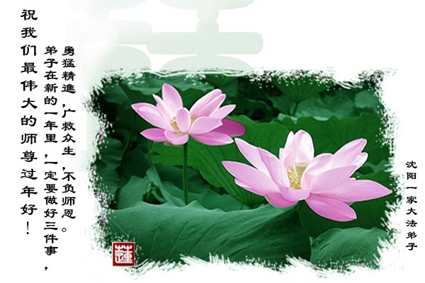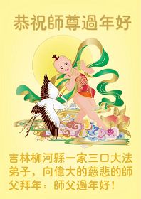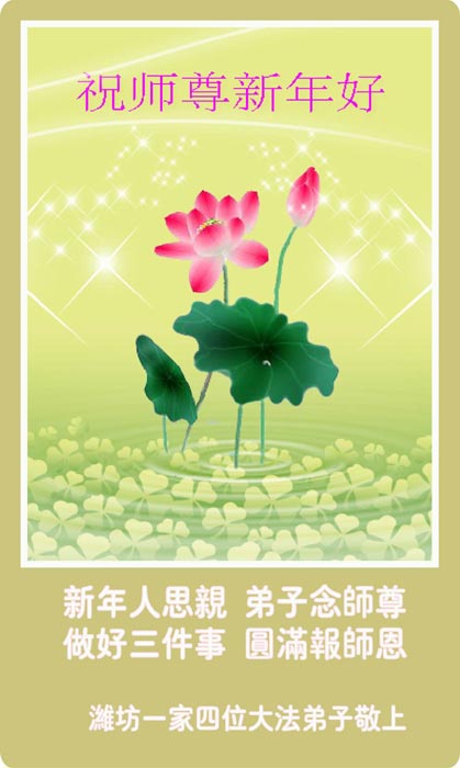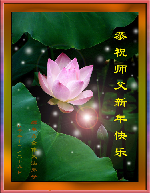 为了众生的得救,为了弟子们的修炼,您为我们费尽了心血。我们全家都有幸成为了大法弟子,感受着师恩的洪大,值此新年到来之际,我们用我们最恭敬的心,敬祝师尊新年快乐。