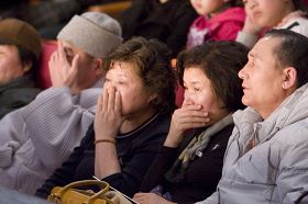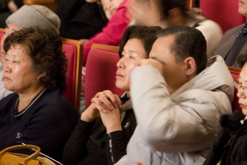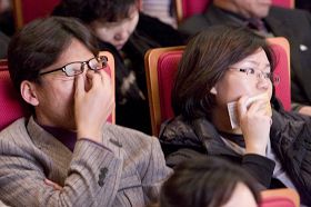 ![]() 大邱的男子给韩国民众的印象一向是坚毅刚强,但是在观看神韵的过程中他们频频被触动,忍不住落泪。 |