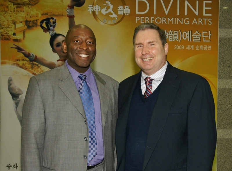 与Gary Mckenna一同出席观赏演出的Juan APyfrom,是驻韩国美军法务参谋,这也是他首次观看神韵演出;第一次观看东方舞蹈。