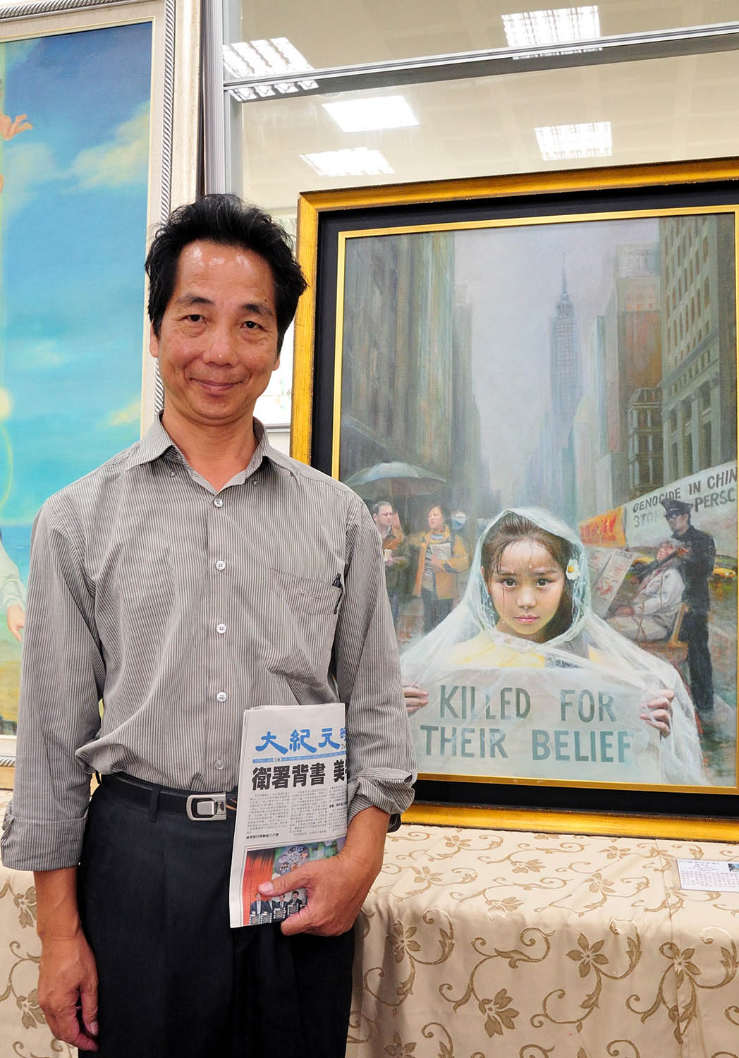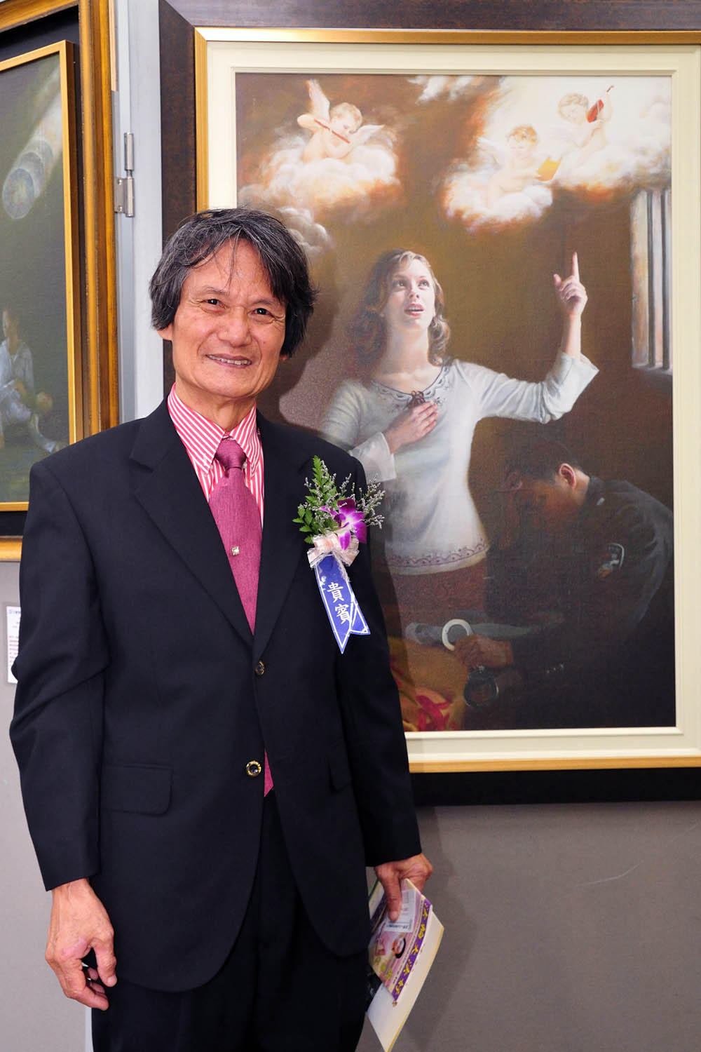 油画画家纪宗仁称许美展的作品在内涵上相当讲究,将真善忍的精神用画面呈现出来,写实的技巧相当高,每一件都是上乘之作。他同时感叹说,我们应该把握当下人权、信仰自由的幸福。看到法轮功学员被迫害得这么严重,却把“忍”字的精神发挥到了极致,是相当了不起的。这么大的迫害,炼的人却越来越多,他相信一定有不可思议的力量、因素在里面。