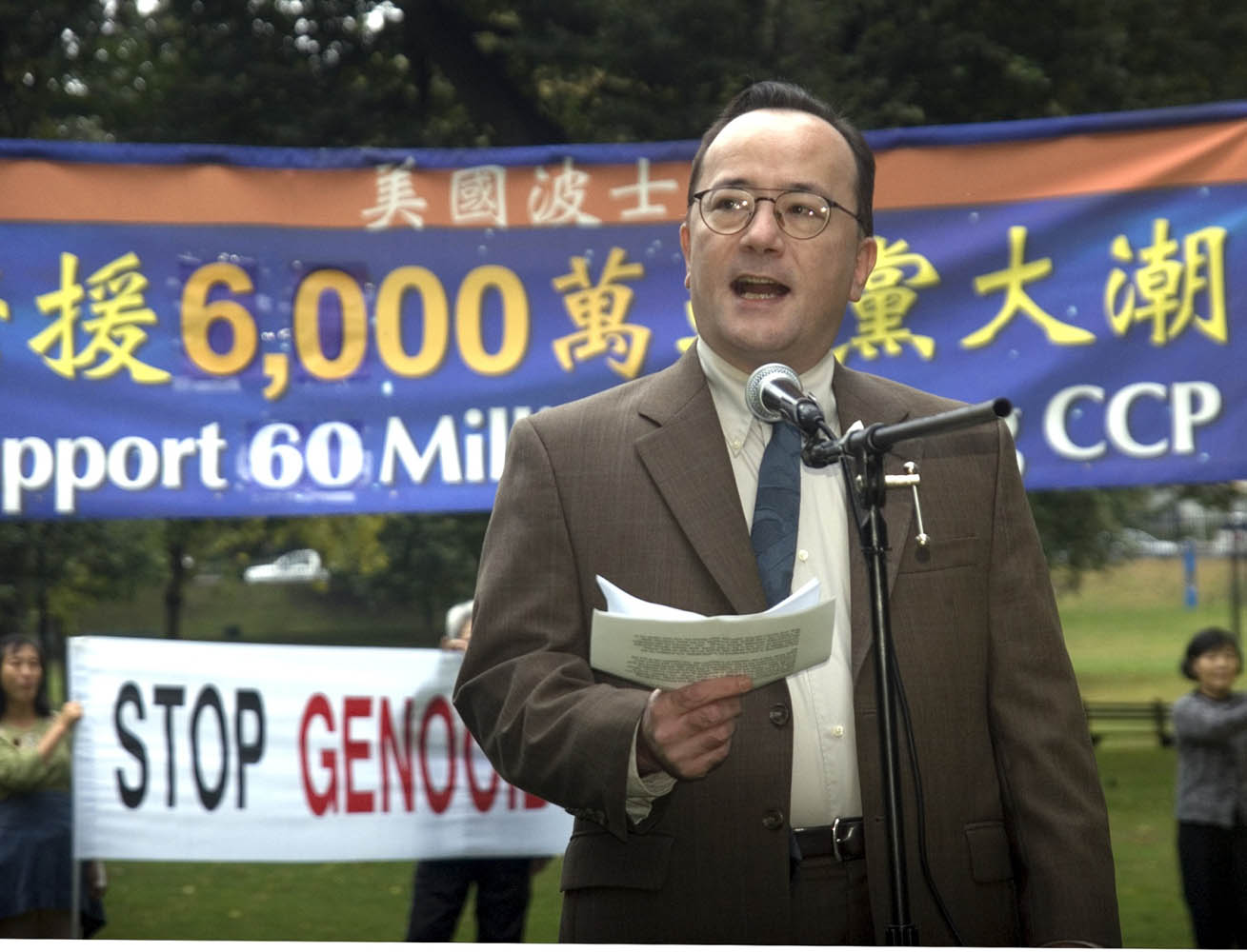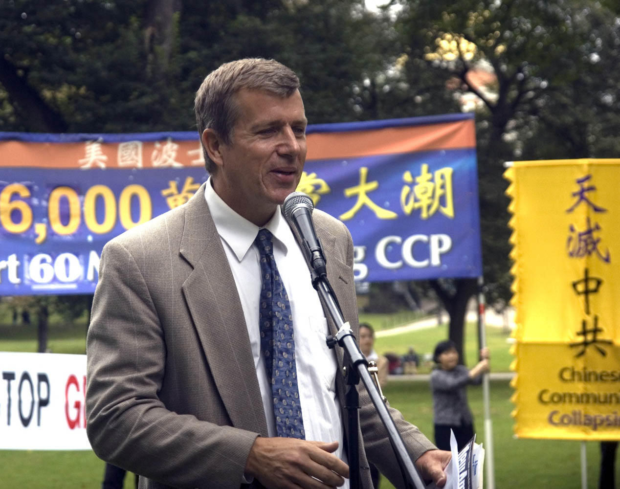 JBS主任薛德烈夫先生在波士顿集会发言,希望美国政府认清中共本质,不被商业利益左右