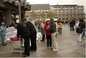 ![]() 德国法轮功学员在科隆大教堂广场举办信息日,许多民众驻足了解真相,有的并签名支持制止迫害。 |
