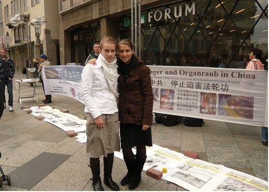 ![]() 这两个年轻的女士从别的城市来科隆经过展位,当了解到在中国有一群人因为他们的信仰被残酷迫害时,她们在制止中共活摘法轮功学员器官征签表上签名,并在横幅前合影留念。 |