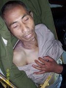 下午2点多,黄立忠由一名犯人搀扶着来到接见室,妻子都认不出他了,面色憔悴,身体枯瘦如柴,牙齿变形,说话有气无力,身体颤抖,仅5个月的时间,好端端的一个人变成了这个样子!47岁的人看起来苍老的象60多岁,她4月中旬见他时,他身体一切正常,并且精神很好,现在变成了这个样子。见面后,他妻子就告诉他:“他们不让我见你,说你违纪。”他说:“说我违纪了?当时他们把我电的差点死过去,后来一点一点缓过来了。”她问:“什么时候啊?”他说:“4月20日。”她问他:“谁电你了?”他说:“是王建军!”她又问:“还有谁打你吗?”他说:“甭提了,没有人再打我,我也遭老罪了!”(意思是在遭受电刑之后,黄立忠又受尽各种折磨)她想继续追问详情,被旁边病监的警察打断,他又告诉妻子,他由于受到严重电刑(电刑就是身体缠上电线后通电体表不留伤痕),导致他耳边有时能听见,有时听不见。当时他虚弱的很,说话费劲,身体一直抖动不停。