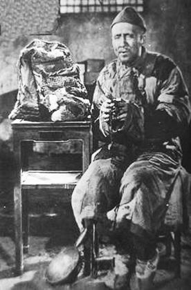 他有时还象个江湖杂耍艺人一样到各处的庙会集市上耍把戏,以取赏钱。表演全身倒立“扛大鼎”,以手代脚做“蝎子爬”,翻身跳“打车轮”,趴在地上给孩子做马骑,还有锥刺身、刀破头等节目,甚至吃毛虫蛇蝎、吞石头瓦砾等等。