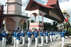 远道而来的天国乐团在龙舟赛表演之后,来到马六甲广场(Melaka Mall)演出。天国乐团踏着整齐的步伐步入广场大厅时,人们被震撼人心的乐曲所吸引,纷纷聚集到广场中心观赏。