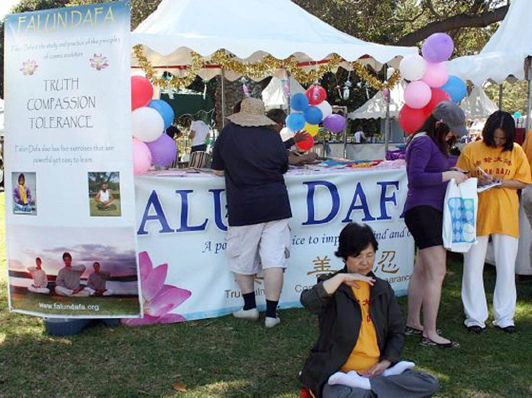 法轮功学员琼(JOAN)感慨表示,“这里有很多华人,以前有些华人对法轮功不了解,对我们有抵触情绪。这次很不一样,我看到今天有许多人来学炼法轮功,你问他知道什么是法轮功?他回答:知道。还有中国大陆出来留学的年轻人主动前来摊位拿真相资料。现在和往年真的不一样了。还有的华人看到我们特别亲热,一边走一边叫:‘法轮功!法轮功!’”