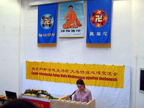 一位来自斯洛伐克的学员在发言中说,当中共首脑来斯洛伐克时,他抱怨斯洛伐克的警察没有配合学员。当他悟到学员应该慈悲对待警察时,警察的态度变了。
