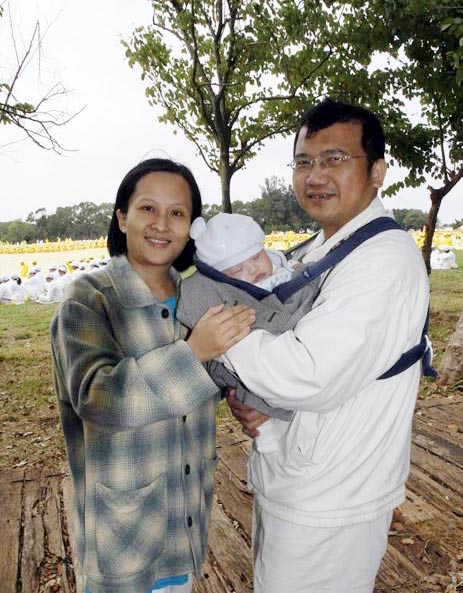 南投谢育润一家三口,带着刚出生四个月的儿子前来,她神情愉悦地表示,结婚八年都没有怀孕,今年家里来了一个新生命的报到,增添喜气,也是缘份的安排。要修好自己,才能把下一代教育得更好。今天是亚洲法会,台湾举办大型活动很壮观,参与这样的盛会,玉润感到很光荣,也额外珍惜这样难得的机缘。