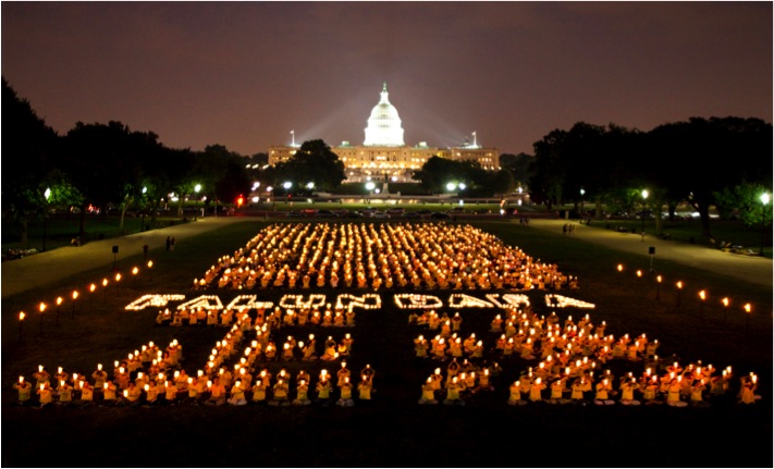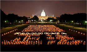 来自纽约的年轻摄影师爱德华(Edward Dai)以《烛光》获得新闻纪实类银奖。《烛光》这幅照片展现的是在美国华盛顿DC白宫前面平静的广场上,法轮功修炼者手举蜡烛用中英文组成巨大的光场:“法轮大法是正法”。