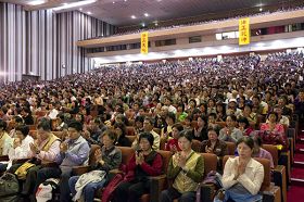 ![]() 十一月廿二日,来自亚太国家的七千多位的法轮功学员在台湾台中中兴大学惠荪堂召开“二零零九年亚洲法轮大法修炼心得交流会”。 |