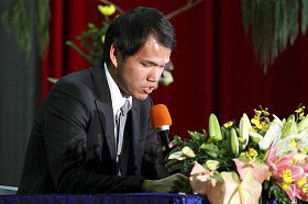 来自韩国的郑期太是通信会社的常务理事,廿一日才到台湾,专程来参加今日的法会。他觉得自己需要提高,台湾法轮功学员很多,他想要来听听学员的心得,对自己有帮助。听了上午的交流,对于学员到香港、印尼洪法时去怕心、去执着心的体会深有感触。他说,虽然大家的修炼环境不同,所在的国家、地区不同,但要去的执着心却是一样的。