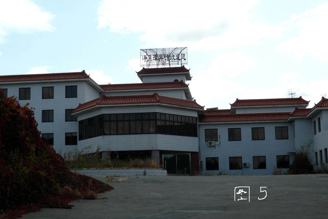 (图三)对法轮功学员施以酷刑的净月宾馆的荒芜衰败全貌,阴森邪气笼罩整个宾馆。