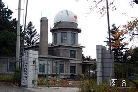 (图四)净月宾馆的后院,是三、四十年代日本人没撤离东北时建的别墅原址,原貌。只是多了几只中共恶警眷养的凶狗。走近净月潭风景旅游区朝山上望去,在净月潭山上的最高处,只能看见别墅塔尖一样的屋顶。走近净月宾馆能看到栏杆上装有摄像头。