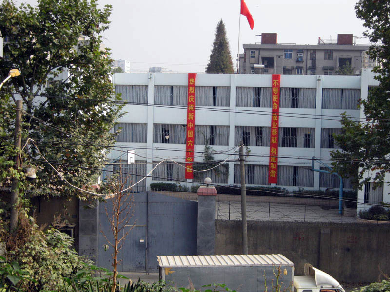 紧邻长江大堤的武汉市武昌区月亮湾,一个秘密监狱,是关押法轮功学员的杨园洗脑班,二层楼以上都是铁栏杆,没有放风的时间,这里没有门牌号码和任何标志铁门永远是紧闭的,上面有一个小洞可以递进东西去高墙、电网、永远紧闭的铁门。