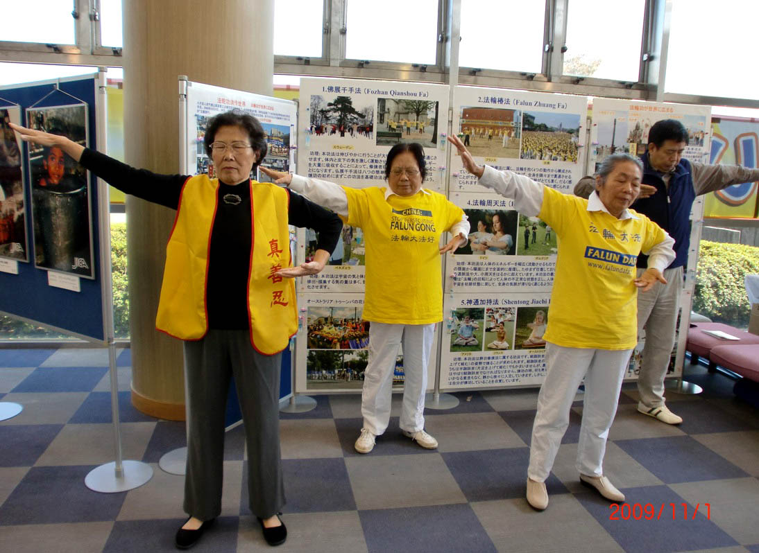 在文化节的第二天,学员们在舞台上演示法轮功的功法之后,马上就有一位个子不高、看起来很精神的老先生到展位上了解法轮功。他看了教功录像后,马上就买了一本日语的《法轮功》,说想学功。在和他的谈话中,学员们得知他今年已经九十二岁了,问他有什么保养的秘诀。他却笑着说:“我想,如果我炼了这个法轮功,就会更年轻了。”