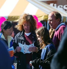 ![]() 人们认真地听法轮功学员介绍功法和发生在中国的迫害 |