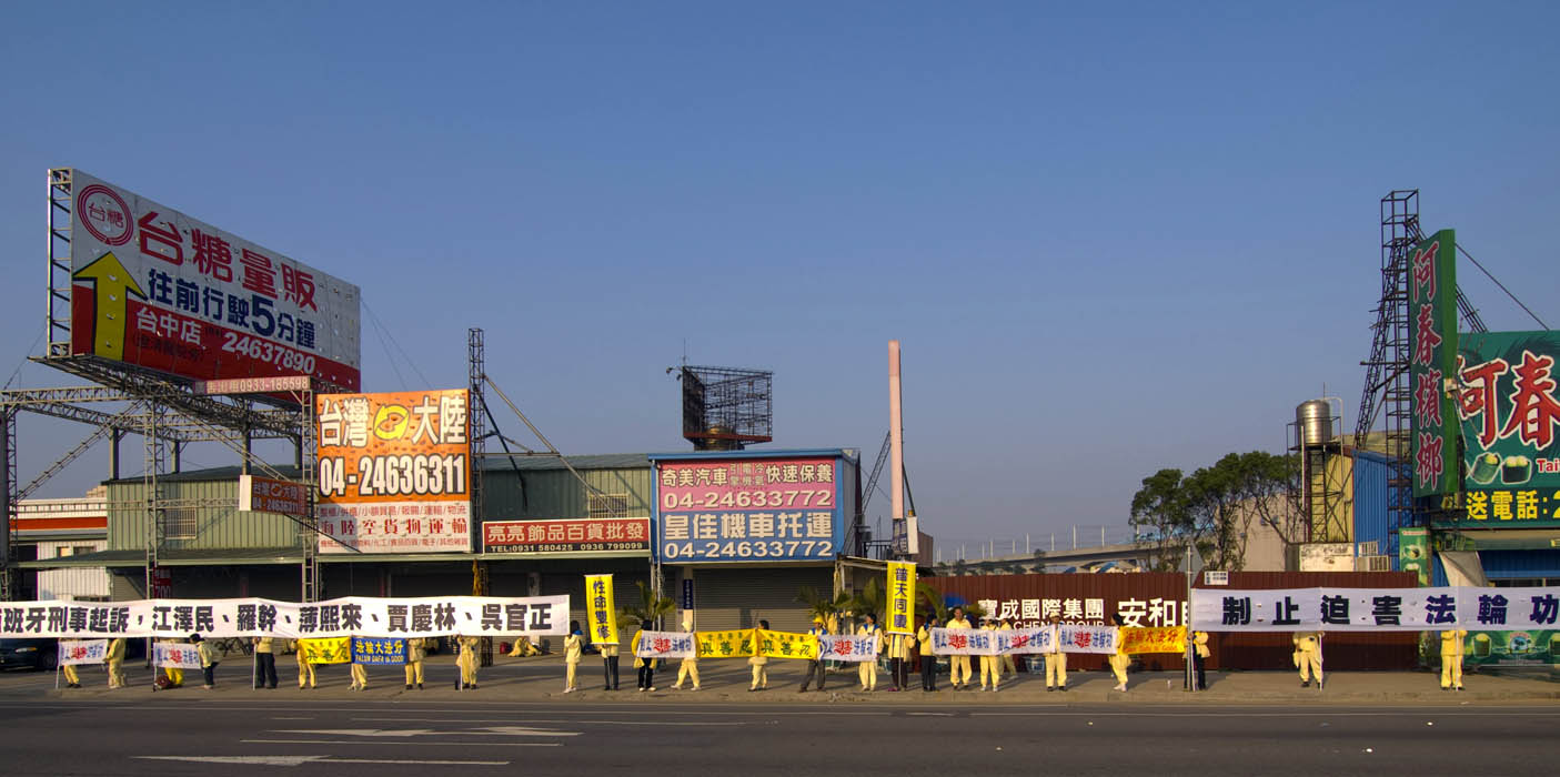 二零零九年十二月二十三日起,中共官员陆续参访台中以外的县市,许多抗议团体已陆续转移,唯法轮功学员仍有上千位在二十三日一大清早聚集中共官员住宿饭店的四周举横幅、炼功,抗议中共迫害。