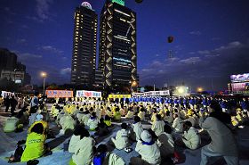 桃园吴先生表示,他是其他的抗议团体的成员,这几天他看到法轮功学员每天都这么多人站出来,是那样的正直与安静,但力量却是很大。他很想让他们的团体能象法轮功这样有这么多人站出来发声,于是二十二日晚去观察守夜的学员,是什么力量让他们可以坚持这么久。