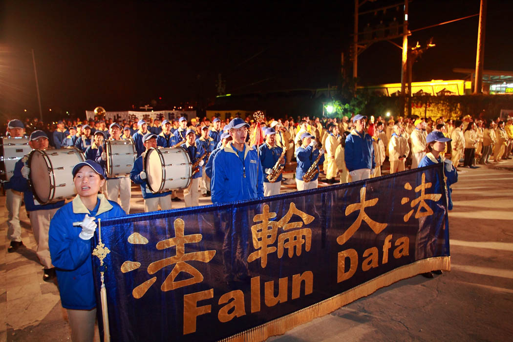 ![]() 法轮功学员在裕元酒店正门的中港路上拉起绵延数公里的横幅长城 |
