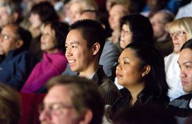 ![]() Mira Costa大学社区教育学院院长Lynda Lee女士与家人一共观看神韵演出。 |