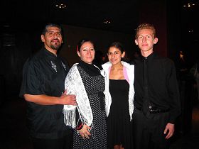 ![]() 墨西哥民族舞蹈演员巴里奥斯(Ricio Barrios)(左二)全家来观看神韵晚会。 |