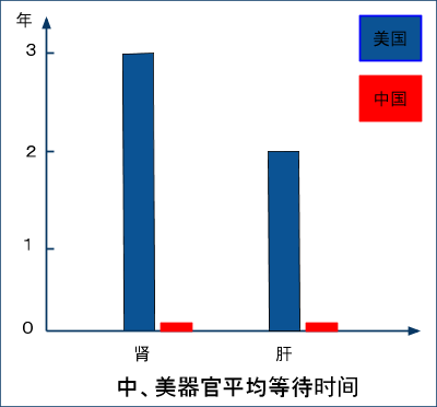 美国卫生部的数据表明,在美国,肝的平均等待时间是两年,肾的平均等待时间是三年。[27] 而中国的一些医院说,他们的器官等待时间短到只要以周来计算。