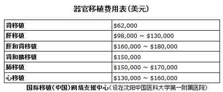 各大医院的收费标准可能不一样,但是昂贵的程度从中国医科大学第一附属医院的国际移植(中国)网络支援中心的费用表中可见一斑。