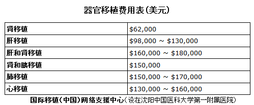 肾移植6万多美元(约合40多万人民币),肝移植10万美元(约合70万人民币),肺和心脏器官更贵,要15万美元以上 (数据来源和详细费用列表请参看附录8)。