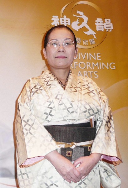 第一次看神韵演出的日本民族舞舞蹈联盟总务部长山口文子女士,身着浅灰色的和服,满面喜悦的神色。她感激地说:“真让人感动,感谢你们举办了这场演出。”