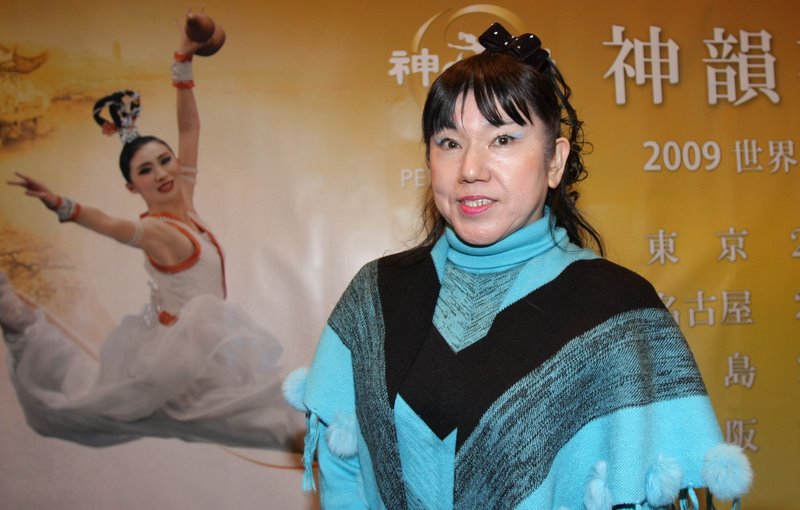 日本民谣歌手Sasaki Koho看完二月十一日神韵艺术团的表演后,他不停的说:“为人们的幸福而唱的歌曲真是令人感动。”