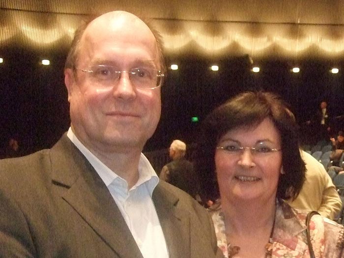 他感叹:“能够看到这样的演出是我们极大的荣幸。”“的确如此,”厦弗女士马上表示赞同。厦弗先生接着说:“演出的服饰也非常漂亮,颜色如此多彩鲜艳。虽然那些歌曲在我们这里不太常见,但是感觉也是很棒。把歌词打到天幕上是个好主意,人们可以和音乐配合起来。”